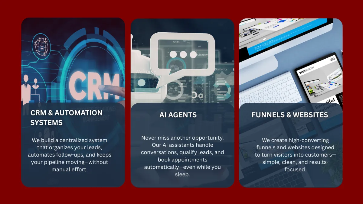 We design, build, and automate your entire marketing and sales system—so your business runs smoother, faster, and smarter without constant manual work.